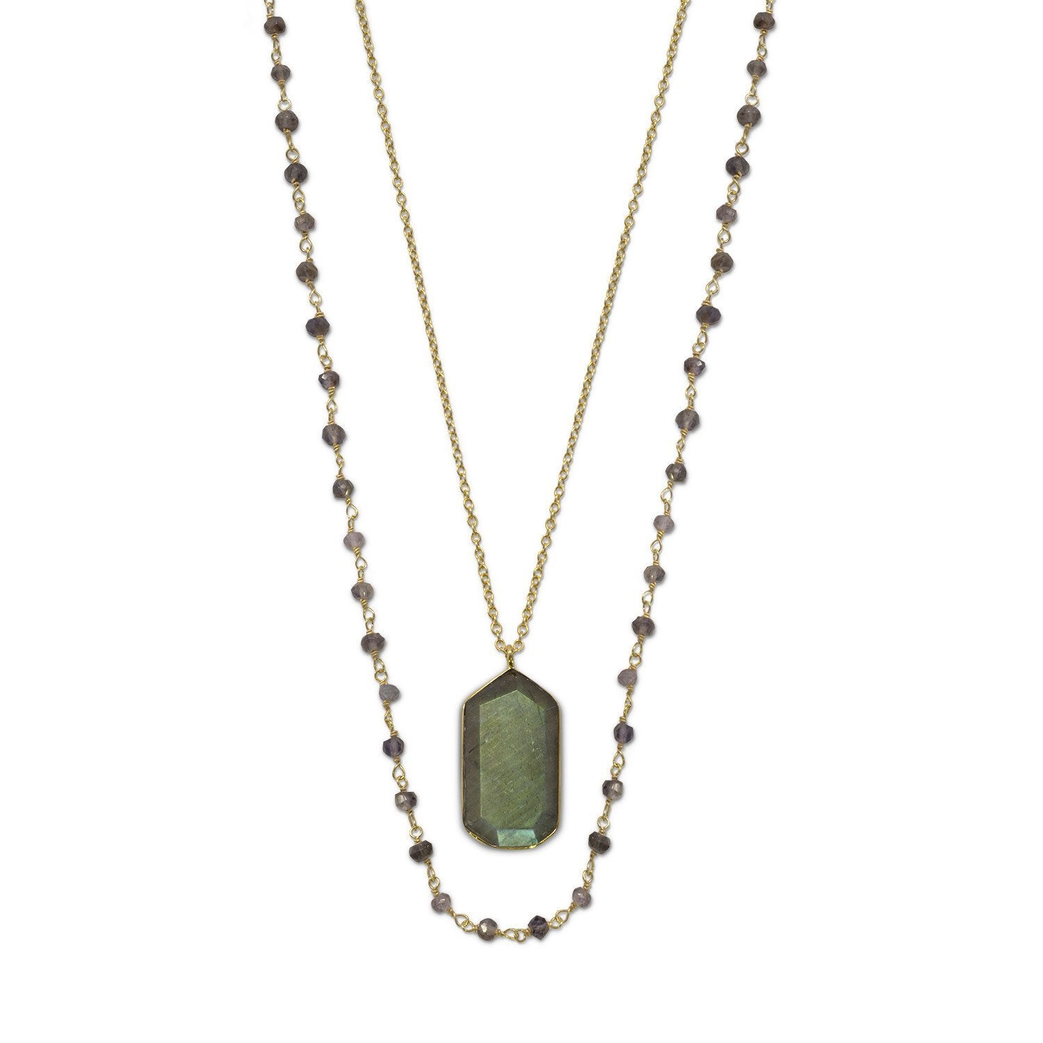 14 Karat Gold Plated Double Strand Iolite and Labradorite Necklace